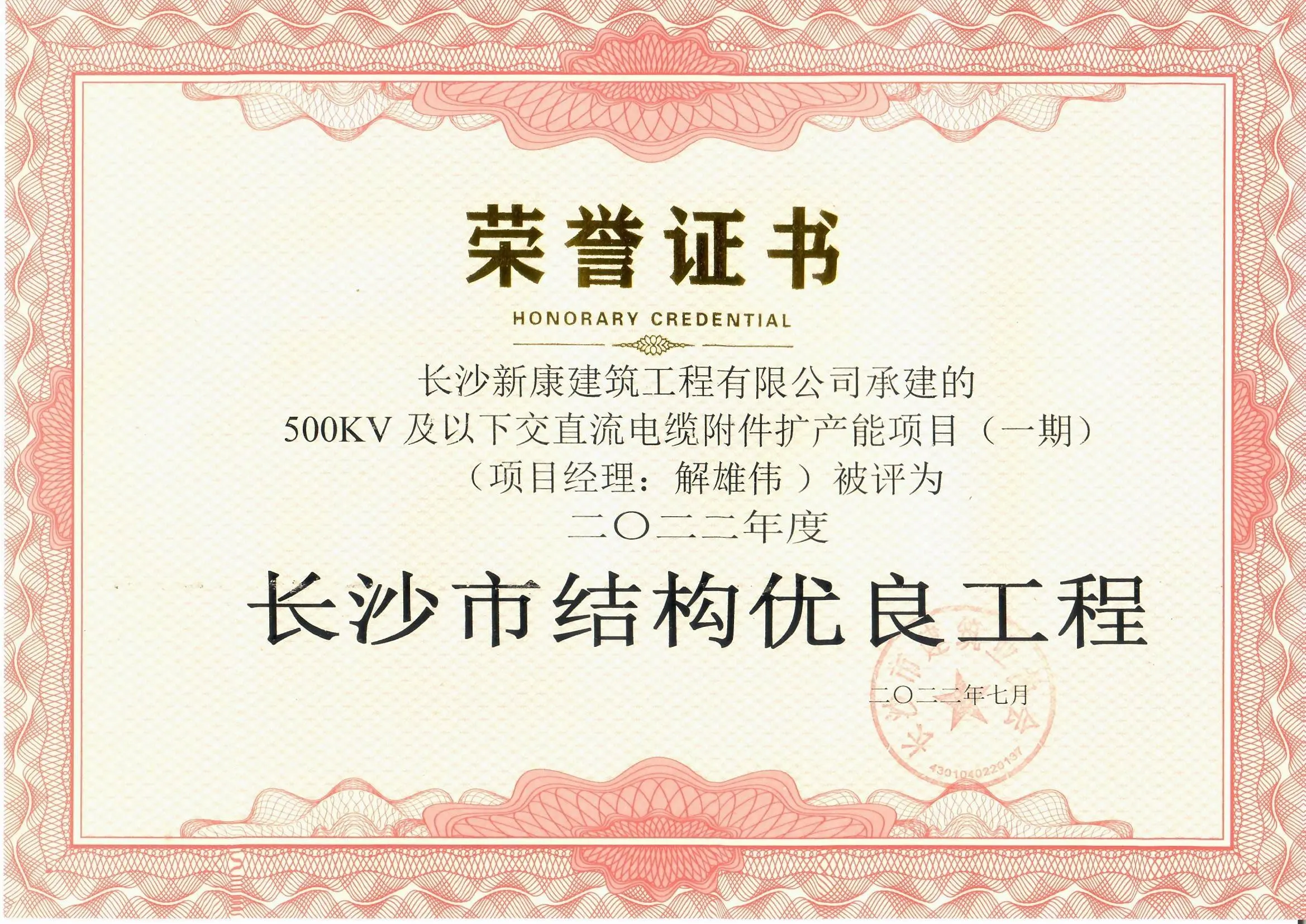 2022长沙市结构优良(500KV一期)