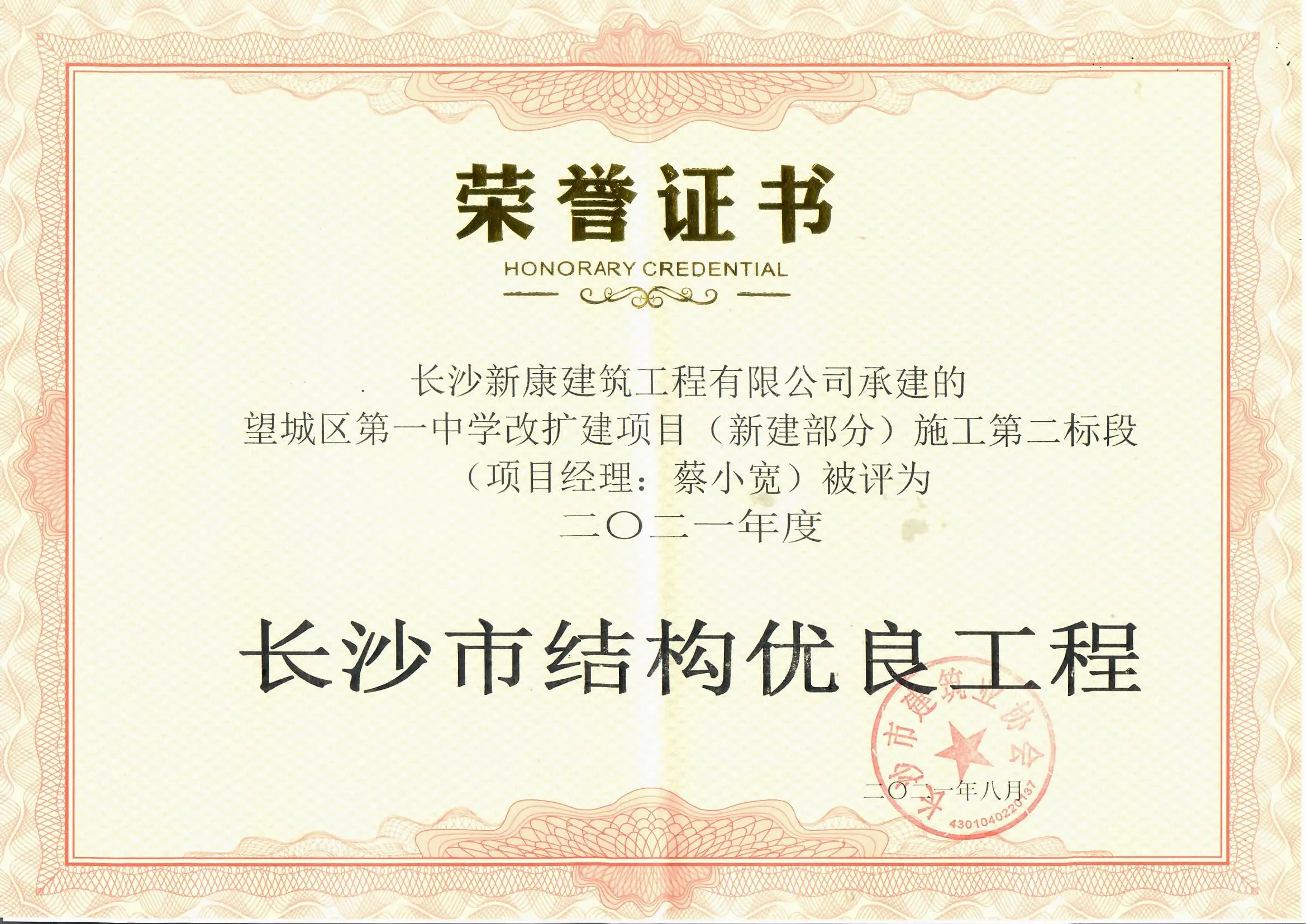2021长沙市结构优良(望城一中二标)